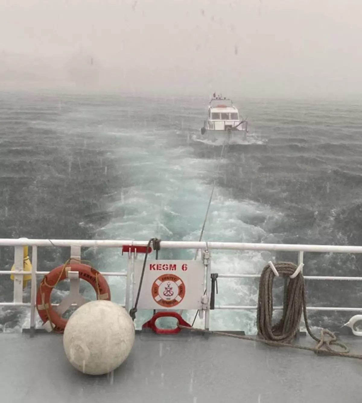 Çanakkale Boğazı’nda makine arızasıyla sürüklenen tekne, hızlı tahlisiye botuyla kurtarıldı.