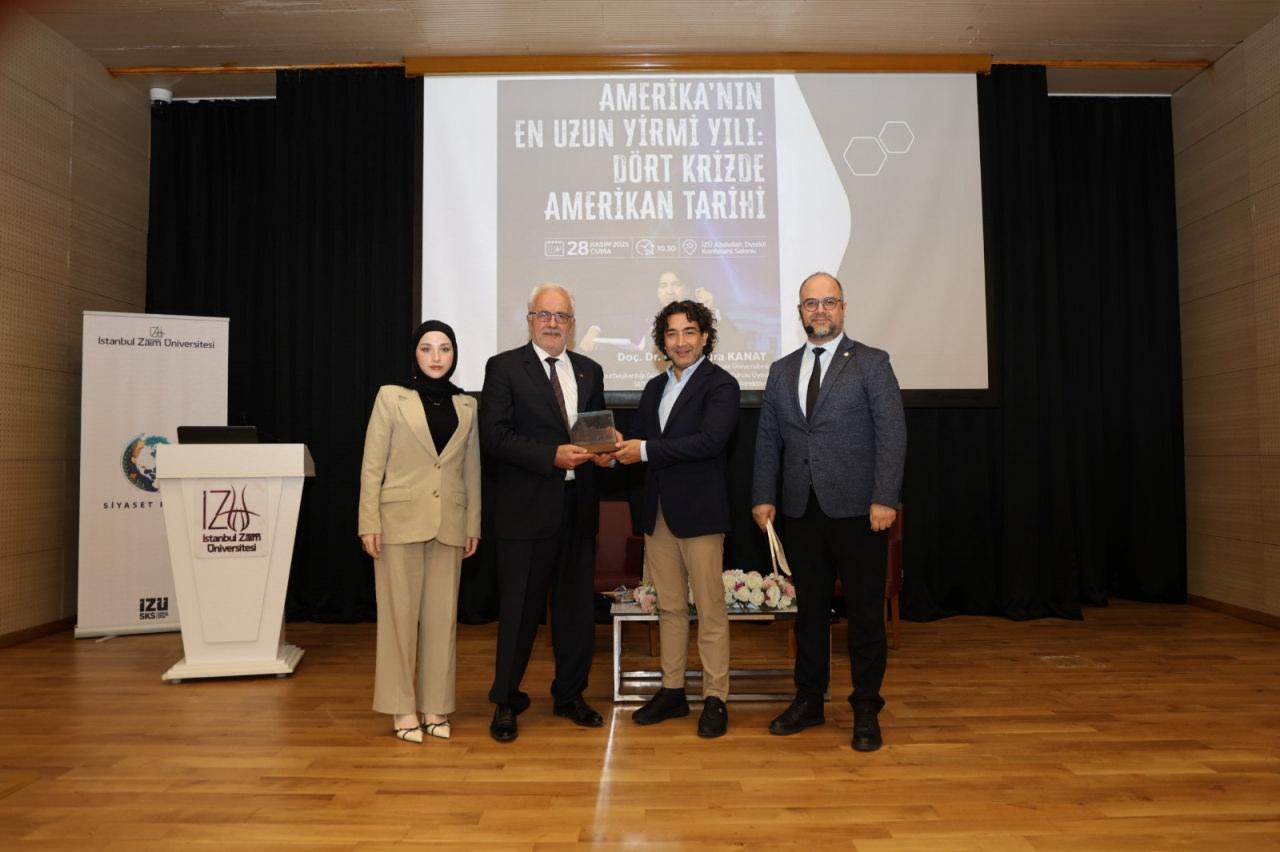İZÜ Rektörü Prof. Dr. Ahmet Cevat Acar, Rektör Yardımcısı Prof. Dr. Erhan İçener, akademisyenler ve öğrencilerin katıldığı programın açışında konuşan Prof. Dr. Acar, ABD’yi yakından gözlemleyen bir akademisyenden dinlemenin önemine dikkat çekerek, “Amerika İkinci Dünya Savaşı’ndan beri Türkiye’nin müttefiki. Dünyanın her yerine uzanan bağlantıları var ve orada yaşanan değişiklikler dünya siyaseti üzerinde derin etkiler bırakıyor.” dedi.