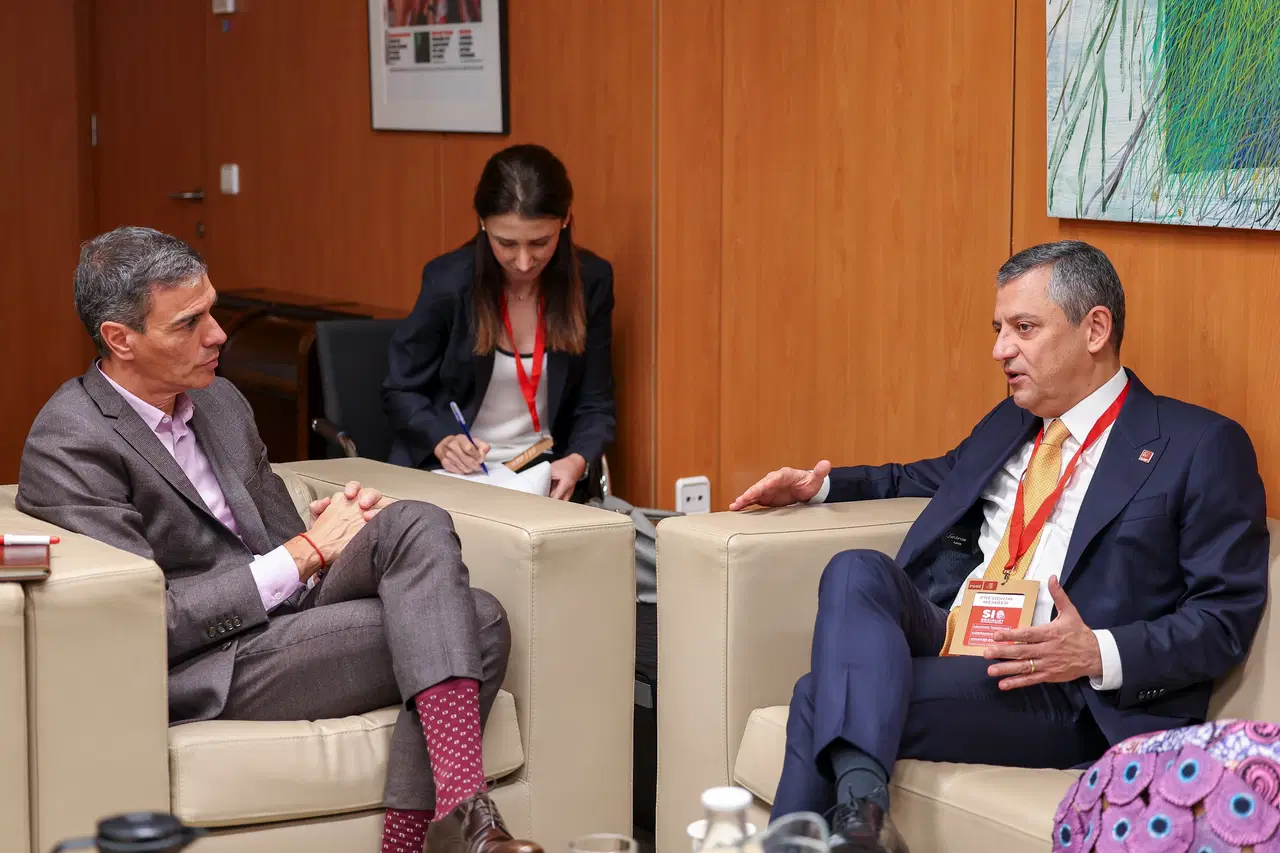 Cumhuriyet Halk Partisi Genel Başkanı Özgür Özel, İspanya’nın başkenti Madrid’deki Sosyalist Enternasyonal Prezidyum Toplantısı öncesinde İspanya Başbakanı ve Sosyalist Enternasyonal Başkanı Pedro Sanchez ile bir araya geldi. İkili ilişkiler ve dünya siyasetindeki gelişmelerin ele alındığı görüşme yaklaşık 45 dakika sürdü.