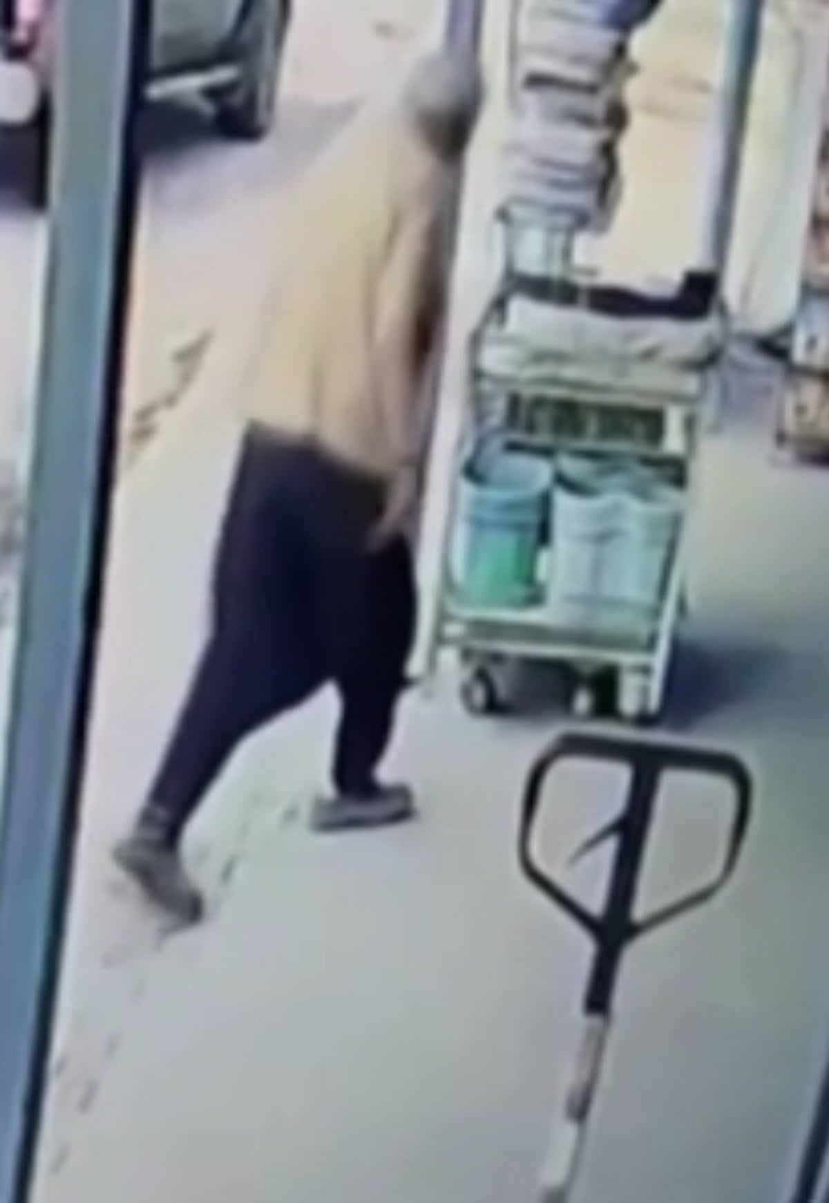 Çamurlu olan ayakkabısını kapının önünde çıkararak içeri çorapla giren Ersin, alışveriş yaptıktan sonra marketten ayrıldı.